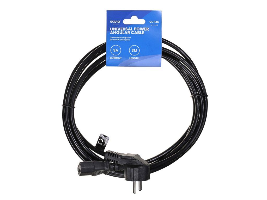 SAVIO CL-146 Napájací kábel Schuko IEC C13, 3 m čierny