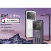 Air1 Ultra je jeden z najtenších odolných telefónov na svete. Vystužený kovový rám obopína tenké telo s hrúbkou len 9,55 mm, zatiaľ čo bežné odolné telefóny majú hrúbku od 12 mm. Dokonca aj hmotnosť tohto telefónu sa drží na nízkej hodnote 259 g. Ak teda chcete odolný telefón, ale nechcete so sebou nosiť zbytočne ťažký model, Air1 Ultra je pre vás ten pravý. Elegantný dizajn zadnej strany s detailom loga spoločnosti bude vyzerať dobre v každých rukách.